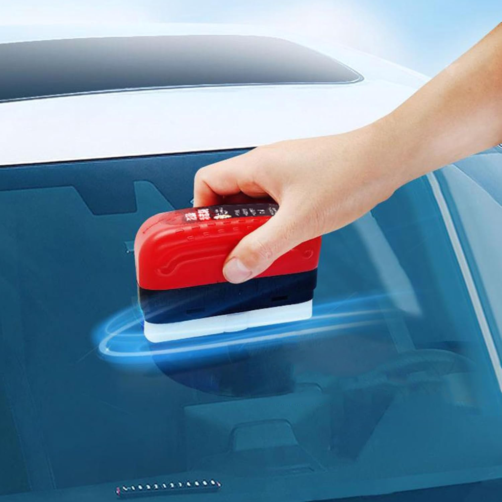 Aplicarea produsului: Aplicați produsul prin simpla frecare a buretelui pe suprafața dorită (parbriz, geamuri, oglindă). Nu este necesar să folosiți lichide suplimentare – soluția este deja integrată în burete.